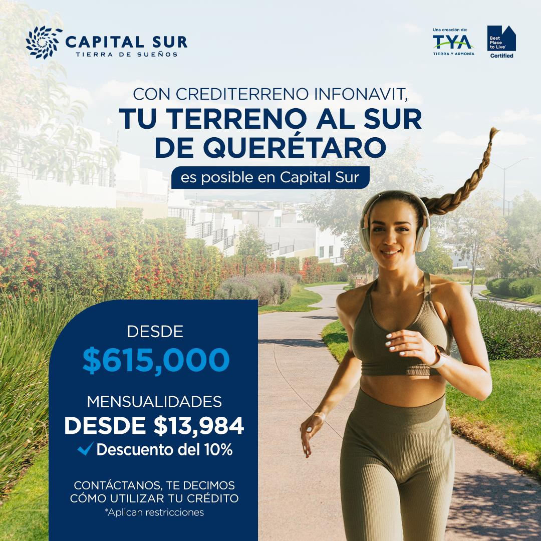 Capital Sur es una comunidad planeada, vive rodeado de naturaleza con más de 200,000 m2 de áreas verdes. Terrenos en privadas con extraordinarias amenidades para disfrutar y compartir con aquellos que amas.